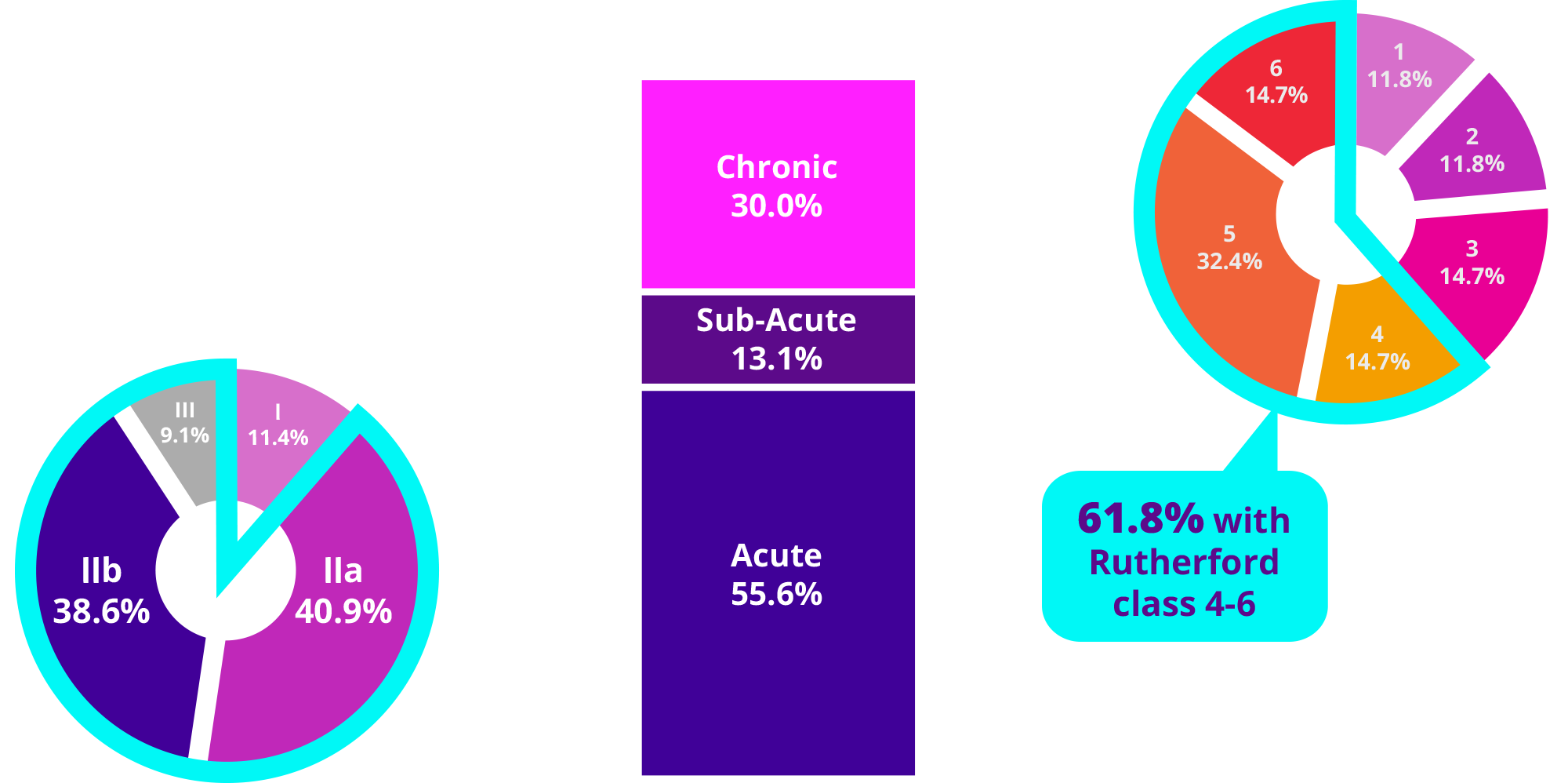 of sub-acute and chronic thrombotic subjects had Rutherford classification 4-6